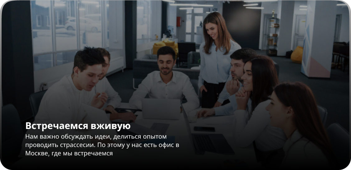 Мы гордимся нашей дружной командой профессионалов, где царит атмосфера взаимопонимания, поддержки и уважения. Мы ставим на первое место командную работу и коллективное взаимодействие, поэтому у нас сложилась дружественная и эффективная рабочая обстановка.